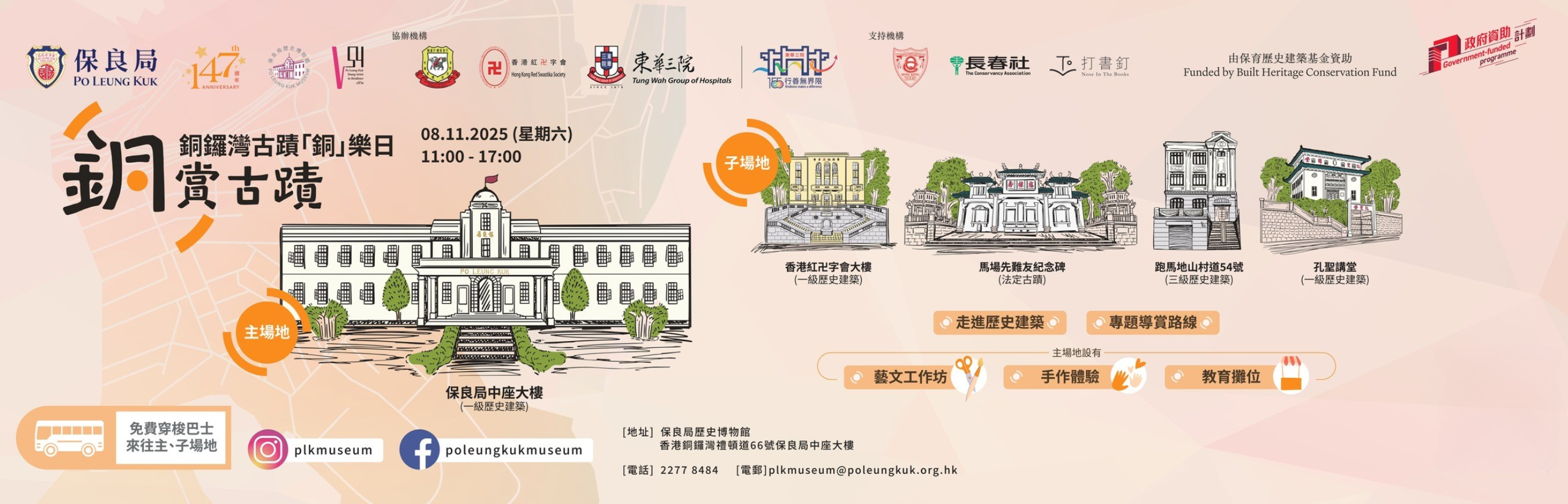 ◈當天設穿梭巴士來回銅鑼灣四座重要古蹟,供已登記參加活動者乘坐。